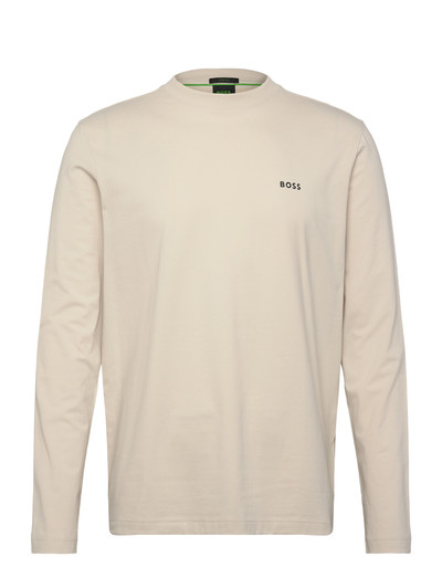 ESSENTIALS long sleeve tee crafted from responsible stretch single jersey CmiA quality fabric. Features a small BOSS logo on the chest in contrast.
