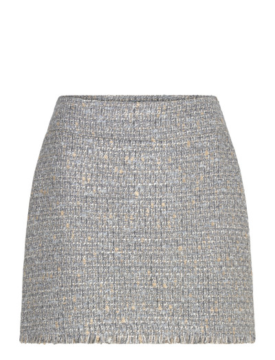 See miniseelik on valmistatud elavast mitmevärvilisest tviidkangast ja pakub klassikalisele siluetile modernset lähenemist. See on disainitud meeldiva keskmise kõrgusega vöökohaga, sellel on peidetud küljelukk, mis tagab sujuva sulgemise, ja mängulised narmaste detailid allääres. Kombineerige see sobiva tviidjakiga, et luua koordineeritud välimus.