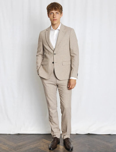 See struktuurne pintsak on klassikalise lõikega ning valmistatud kootud polüestri ja villa segust. Sellel on reväärid, nööpkinnitus ja lõhikud taga. Täieliku ülikonna saamiseks kombineeri see sobivate pükstega.