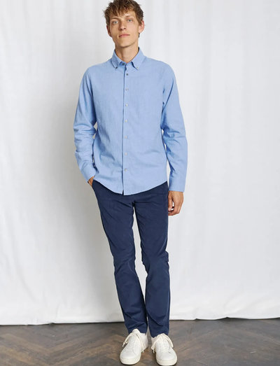 Tavaline lõigeSee särk on loodud mugavust silmas pidades ja pakub avaramat lõiget vabaaja puudutusega. Harjatud puuvill tagab pehme tunde, samas kui nööbitav krae ja reguleeritavad mansetid lisavad mitmekülgsust. Prantsuse nööbiliist kontrastsete nööpidega.