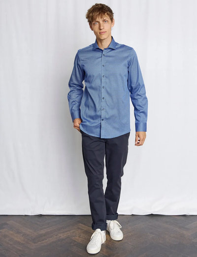 Tavaline lõigeSee modernse lõikega särk pakub rafineeritud siluetti. Peen muster lisab visuaalset huvi, muutes selle sobivaks nii professionaalseks kui ka nutikaks vabaaja keskkonnaks. Klassikaline nööbitav disain.