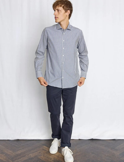 Klassikaline triibuline särk pakub nutikat ja kohandatud välimust. Slim fit disain tagab modernse silueti, muutes selle sobivaks nii professionaalseks kui ka vabaaja keskkonda. Omaduste hulka kuuluvad nööbitav esiosa ja korralik krae.