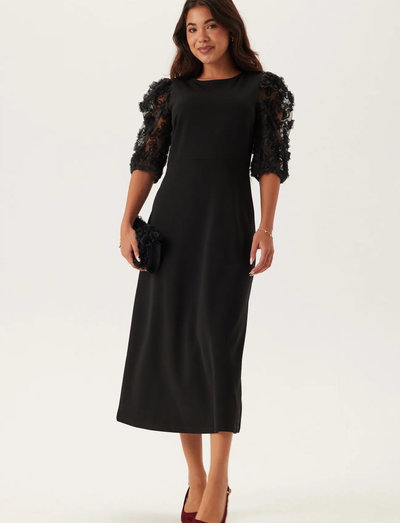 Omapäraste lilleliste varrukatega midikleit jätab meeldejääva mulje. Kehassehoidev disain on valmistatud pehmest materjalist ja sellel on klassikaline ümar kaelus. See kleit sobib ideaalselt pidudeks ja erilisteks sündmusteks.