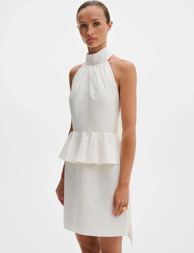 See minikleit on valmistatud peene žakaarmustriga ning sellel on meelitav peplumpiht ja šikk halterkaelus. Kõrge kaelus seotakse elegantselt kuklas, samas kui peidetud küljelukk tagab sileda ja liibuva silueti.