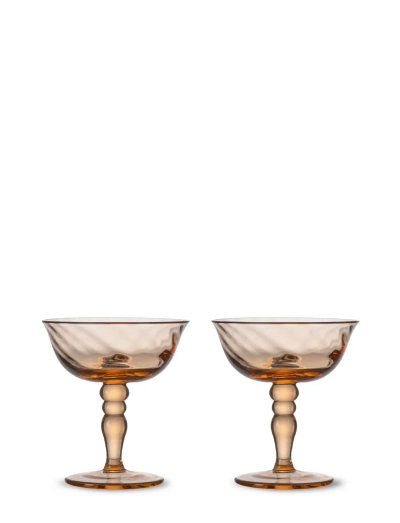 Our Italian coupe takes inspiration from the vineyards, where this small glass feels both luxurious and holds just the right amount of drink to keep it chilled. Beautifully delicate, it's perfect for a small drink or dessert. Adorned with a lovely striped pattern and crafted from coloured glass for added flair. The colour, a stunning peach hue, complements any setting. In the Opacity Peach collection, you'll also discover a champagne coupe, wine glasses, and round water glasses. Designed by Byon Studio. Delivered in a 2-pack within a Byon box.