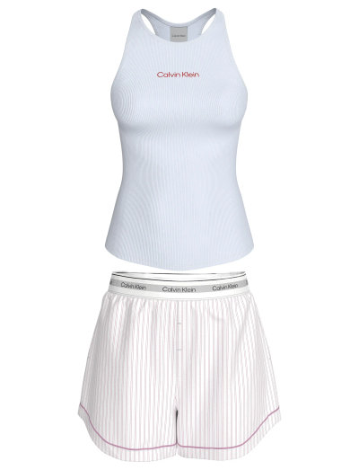 See komplekt sisaldab soonikkoes tankpluusi ja triibulisi lühikesi pükse, mis sobivad suurepäraselt lõõgastumiseks või magamiseks. Pluusil on racerback-disain, pükstel aga elastne vöökoht koos brändinguga.