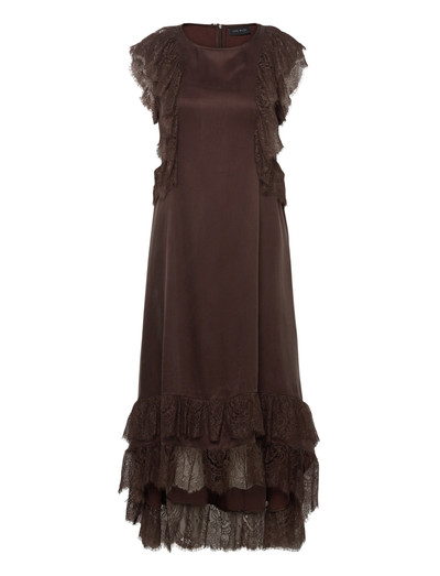 See pikk kleit on valmistatud esmaklassilisest cupro materjalist ning sellel on õrnad volangid koos narmastega. Disain pakub elegantset siluetti, mis sobib suurepäraselt õhtusteks üritusteks.