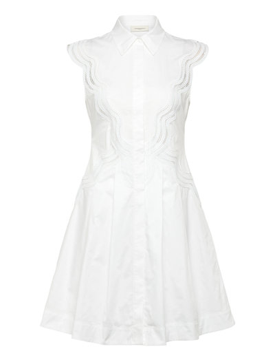 See särk-kleit on valmistatud esmaklassilisest popliinist ning sellel on õrnad lõigatud ja õmmeldud pitsdetailid, mis pakuvad elegantset pilguheitu nahale. Lisaks on kleidil peidetud nööpkinnitus ning ees ja taga voldid, mis loovad kauni, avara seeliku.