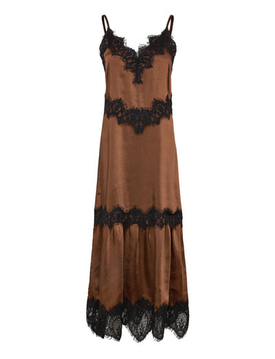 Õrn pitsdetail tõstab esile selle langeva maksikleidi. Aluskleidi siluett ja reguleeritavad rihmad tagavad mugava istuvuse, samas kui astmeline alläär lisab graatsilist liikumist.