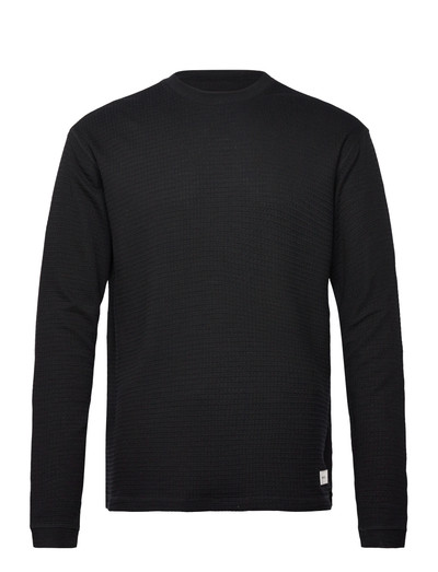 See pikkade varrukatega jersey pakub soojust ja mugavust tänu klassikalisele ümmargusele kaelusele ja sisseõmmeldud varrukatele. Vahvelkangas lisab peent visuaalset huvi, samas kui lüotselli ja villa segu tagab pehme tunde.