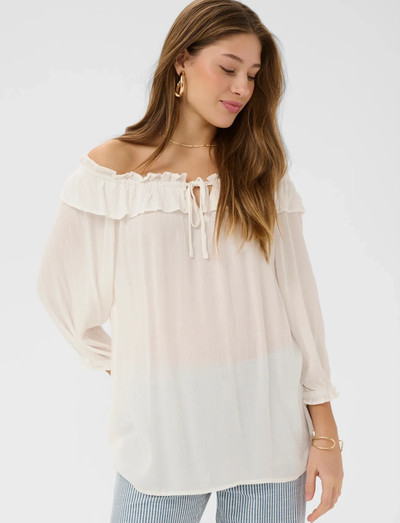 See pluus pakub lõõgastunud siluetti ning sellel on õrn ruffle'iga kaelus ja lipsud. Kolmveerandpikkusega varrukad lisavad sellele pingevaba võlu, muutes selle mitmekülgseks lisandiks igasse garderoobi.