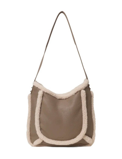 This bag combines a relaxed look with practical features. Made from faux shearling with soft fluffy details along the edges and inside, it closes with a press-button and features an open internal pocket for easy organisation. It can be carried both as a shoulder bag and crossbody.