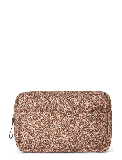 This toiletry bag is designed in floral print quilt and its outer fabric and inner lining are made from ightweight 100% certified recycled material. It closes with a zipper and is equipped with several internal pockets and an external pocket.