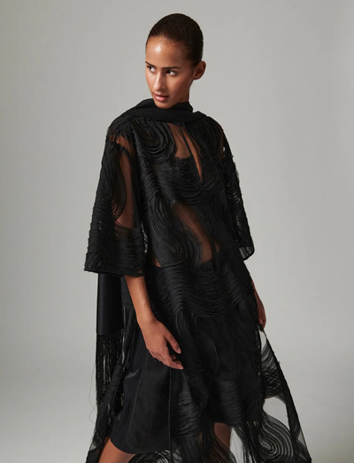 Sellel pikkade küljelõhikutega ja V-kaelusega midipikkusega kaftan-stiilis kleidil on õhuline ja ülevoolav välimus. Läbipaistev pitsiline muster lisab õrna puudutuse. Selle lõtv lõige muudab selle ideaalseks kihistamiseks laia säärega pükste peale.