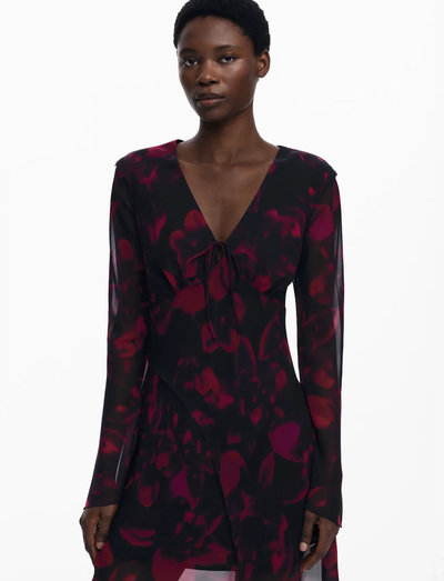 Õhuke kangas ja elav lillemuster iseloomustavad seda pikkade varrukatega kleiti. Voolav siluett ja õrnad detailid muudavad selle ideaalseks õhtusteks üritusteks või erilisteks sündmusteks.