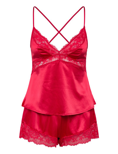 Sileda satiinist ja õrna pitskaunistusega top ja lühikesed püksid pakuvad nii elegantsi kui ka mugavust magamiseks või lõõgastumiseks. Rafineeritud disain muudab selle ideaalseks nii ööriietuseks kui ka stiilseks koduriietuseks.