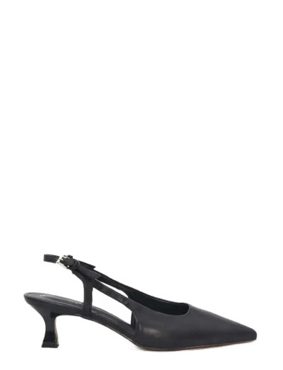 Sile siluett määratleb seda slingback-kinga, mida täiendab peenike madal konts. Disainil on terav ninaosa ja reguleeritav pandlaga rihm, mis tagab kindla ja stiilse sobivuse.