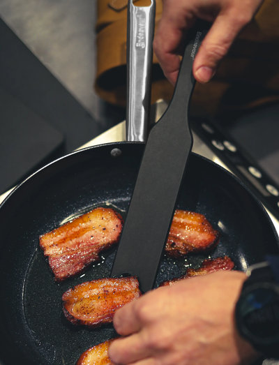 Elegantne spaatel, mis on mõeldud kõikideks töödeks, kus koostisosi tuleb pannil või küpsetusplaadil pöörata. See töötab kõikide materjalidega ja on usaldusväärne tööriist näiteks pannkookide valmistamiseks.