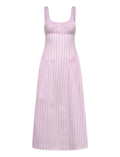 See puuvillasest lõngavärvitud kangast valmistatud midikleit on meeldiva ümara kaelusega ja õrnade kroogetega. Varrukateta disain ja A-lõikeline seelik loovad õhulise silueti, samas kui tõmblukk tagab lihtsa kandmise. Voodrita konstruktsioon muudab selle ideaalseks soojemateks päevadeks.