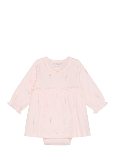 Rib body dress from FIXONI. The body dress has a skirt with flounce and gathering around the waist, frills on the shoulders. The body dress has long sleeves and closes with snaps between the legs and on the shoulder. Certified acc. to OEKO-TEX® STANDARD 100 Cert. No. 2276-364 DTI