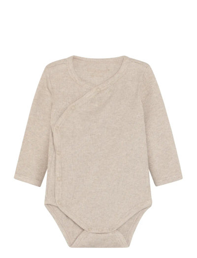 Solid-colored melange body from FIXONI with wrap around effect with snap closure. The body also closes with snaps between the legs. Made of rib ensuring a stretchable and comfortable This product contains TENCEL™ fibers. TENCEL™ is a trademark of Lenzing AG