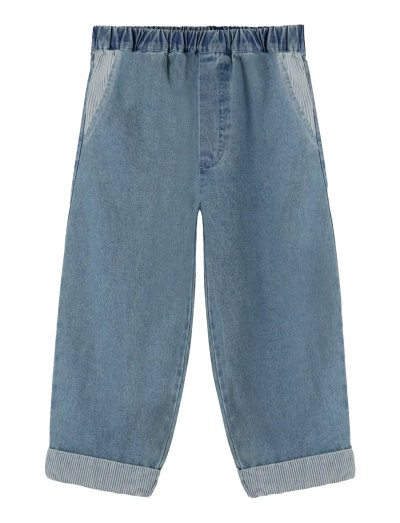 Loose fitNendel pikkadel teksapükstel on mugav elastne vöökoht ja praktilised küljetaskud ning nende lõige on lõtv, mis tagab liikumisvabaduse. Triibulised detailid kaunistavad taskuid ja allakeeratud äärt, lisades klassikalisele teksastiilile omapära. Allakeeratavat äärt saab reguleerida vastavalt lapse kasvule, mis võimaldab pükse kauem kanda. Täieliku komplekti saamiseks kombineeri neid pükse sobiva särgiga.