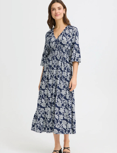 Sellel midikleidil on meelitav V-kaelus ja üleüldine lillemuster, mis teeb sellest lihtsa valiku soojaks ilmaks. Kolmveerandpikkusega varrukad ja elastne vöökoht lisavad sellele mugavust ja lihtsust.