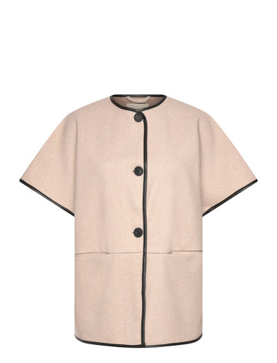 See villane jakk pakub rafineeritud siluetti puhta, nööbitava esiosaga. Lühikesed varrukad ja kontrastsed detailid lisavad sellele elegantsele rõivale modernse puudutuse.