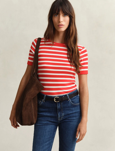 See triibuline T-särk on slim-fit lõikega ja valmistatud soonikkoes kangast. Ümar kaelus lisab naiselikkust, samas kui tikitud logo allääre kohal on peen brändingdetail. Parima hoolduse tagamiseks pese pahempidi.