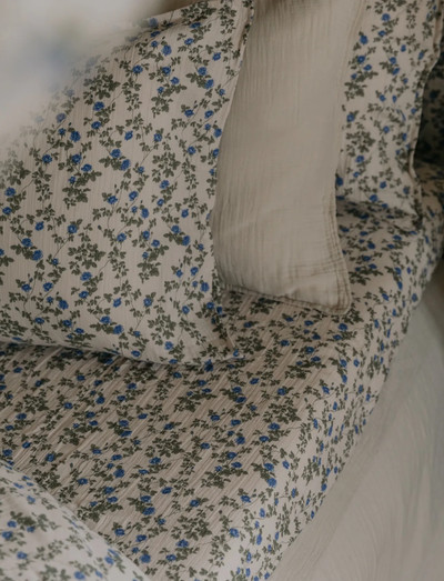 Muslin bed set made in cotton muslin that is tightly woven with the finest yarns, making it beautifully textured, soft and lightweight as well as durable. Button closure. This set includes 1x duvet cover and 1x pillowcase.