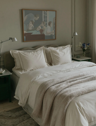 Our bedding is at the heart of what makes Garbo&Friends, designed for the sweetest of dreams. The bed set has a timeless and elegant design with delicate ladder lace details and a clean button closure. Made from 300tc organic cotton percale, a breathable quality that feels so soft against the skin. Made using Airo-wash instead of traditional garment washing, reducing water consumption by 90% and saving an average of 10.5 liters of water per bedsheet.
