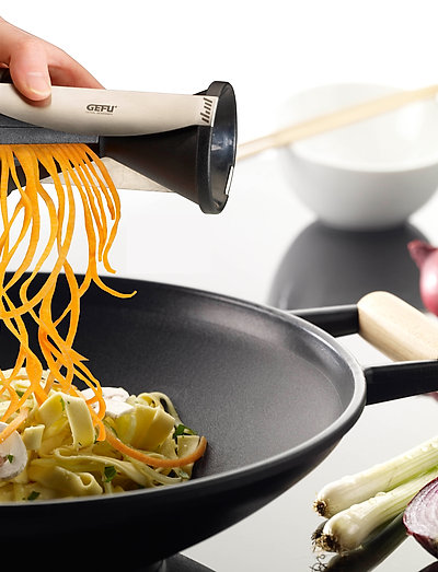 Spiraallõikuri abil saate valmistada lõputuid Julienne'i ribasid porgandist, redisest, kurgist ja igasugustest muudest kindlatest köögiviljadest.