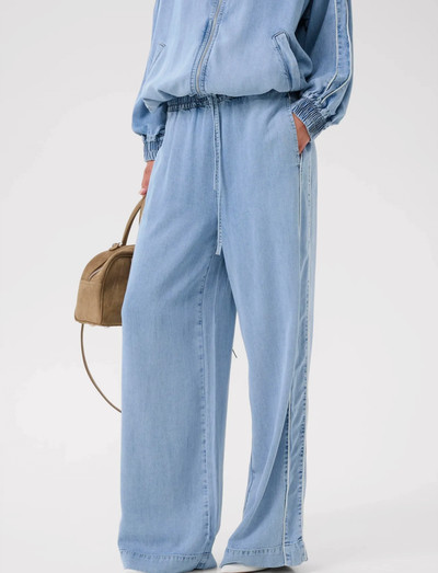 Nendel pükstel on lõõgastav ja voolav siluett, pakkudes nii mugavust kui ka stiili. Neil on laia säärega disain, elastne vöökoht koos nööriga ja peened detailid külgedel.