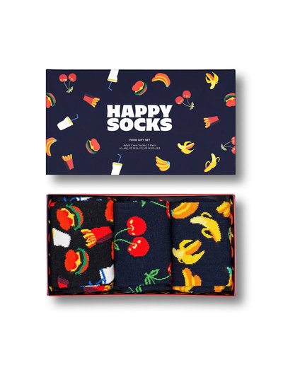 See kingituskomplekt sisaldab kolme paari Happy Socks -sokke. Igal paaril on lõbus ja värviline disain erineva toiduteemaga. Sokid on valmistatud kvaliteetsetest materjalidest ja on mugavad kandmiseks.