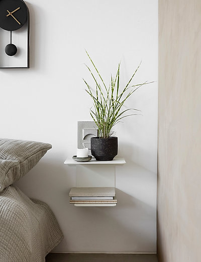 House Doctor'i Book on valge kattega terasriiul, mis sobib ideaalselt kaasaegsesse koju. Alumisele riiulile saab hoida raamatuid ja ülemisele riiulile asetada vaasi, küünlaaluse või väikese laualambi. Riputage Book oma voodi kõrvale öökapiks või elutuppa oma lemmiktoodete esitlemiseks.