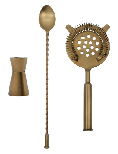 Valmistage suurepäraseid kokteile selle stiilse roostevabast terasest komplektiga, mille viimistlus on antiikmessingist. see komplekt sisaldab mõõtetassi, sõela ja segajat, ühendades funktsionaalsuse vintage-esteetikaga, mis on täiuslik täiendus igale baarikollektsioonile. roostevabast terasest konstruktsioon antiikmessingist viimistlus sisaldab mõõtetassi, sõela, segajat viimistlus/värv võib erineda tõstke oma baarimängu selle keerulise kokteilikomplektiga.