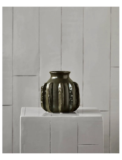This dark green, handmade vase brings sculptural beauty and a personal, artistic touch to your living space. Its organic shape, inspired by nature, creates a striking focal point on the dining table, a shelf, or in the hallway.