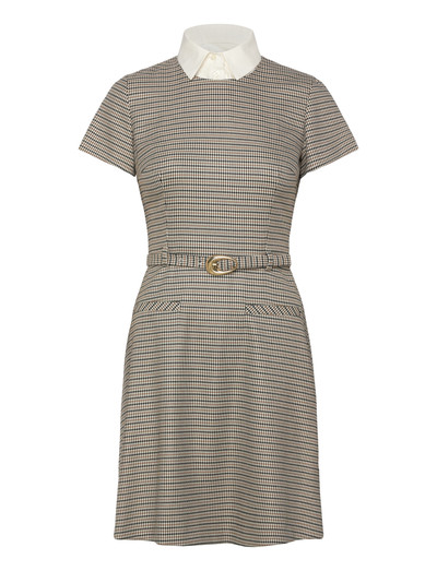 Sellel minikleidil on eriline X-kuju ja sartoriaalne mini-houndstooth muster. Sellel on eemaldatav kontrastne terav krae, lühikesed varrukad ja pandlaga vöö. Disaini täiendavad nähtamatu tõmblukk ja imitatsiooniga paspeltasku.