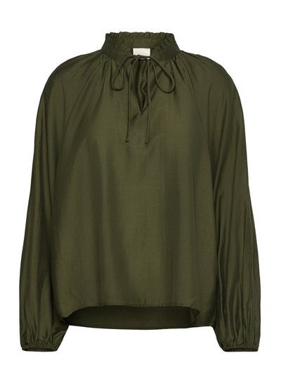 Sellel pikkade varrukatega pluusil on õrn lipsuga kaela detail ja lõõgastunud siluett. Kogutud kätised lisavad varrukatele peent volüümi, muutes selle mitmekülgseks rõivaesemeks kihiliseks kandmiseks või eraldi kandmiseks.