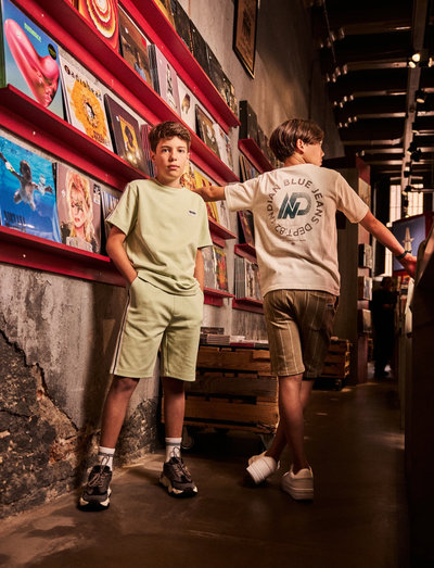 Jogging shorts from Indian Blue Jeans. The shorts feature an all-over striped print. They have front pockets and an adjustable drawstring at the waist.