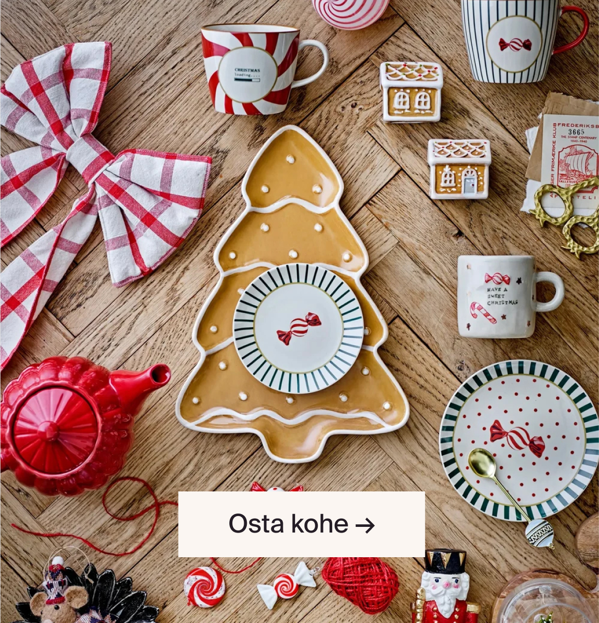 Leia meilt kõike alates kaunistustest ja pidulikest lauakatetest, advendikalendritest, hubastest ja igale vanusele sobivatest pidulikest riietest kuni kingiideedeni.