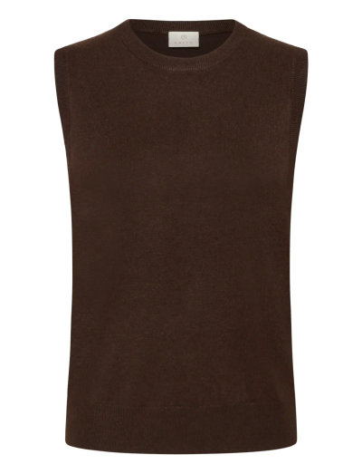 The KAlizza slipover is a simple and soft style, that will add a cosy touch to any outfit. It is sleeveless with a round neck, and it is made in a tight knit fabric. The slipover has a regular fit and is cut at the hips, and the edges are finished with a rib knit.