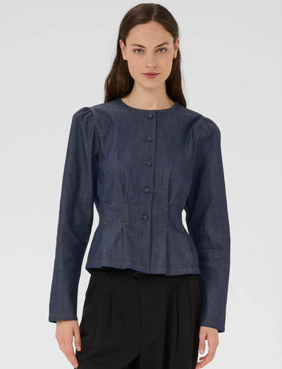 Pikkade varrukatega pluus on rafineeritud siluetiga ja eest nööbitav. Disainis on vöökohal peened voldid, mis rõhutavad figuuri, samas kui puhvis õlad lisavad elegantsi.