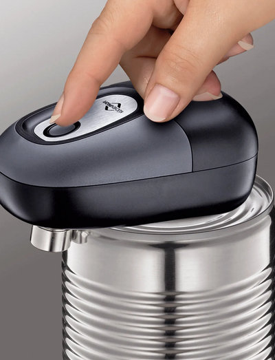 Automatic can opener. High quality plastic. Opens cans smoothly without sharp edges, with magnet to hold the lid. Lid can be reattached.