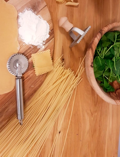 Raviooliratas sobib ideaalselt maitsvate ravioolide valmistamiseks. Rullid kaks võrdse suurusega tainaslehte ja asetad nende vahele täidise. Suru kaks plaati kergelt kokku ja siis kasuta ratast. See tihendab ja eraldab taina ühe tööga. Saate vabalt valida oma makaronivormi ja teil ei jää tainast üle. Kui töö on tehtud, kaob roostevabast terasest seade nõudepesumasinasse ja on järgmise töö jaoks värske.