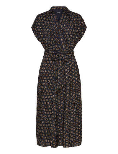 Silmatorkav geomeetriline muster määratleb seda midikleiti, luues elegantse ja moodsa välimuse. Kleiti iseloomustab figuuri rõhutav vöökoht, mis rõhutab siluetti, samas kui kerge kreppkangas tagab mugava istuvuse. Ideaalne soojadeks ilmadeks, pakkudes pingutuseta stiili ja elegantsi.