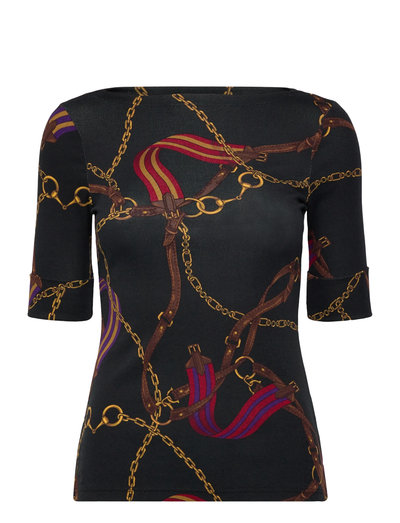 Silmapaistev trükimuster tõstab selle soonikkoes topi esile, muutes selle silmapaistvaks rõivaesemeks. Veniv kangas tagab mugava ja figuuri järgiva istuvuse, samas kui lühikesed varrukad muudavad selle ideaalseks soojema ilmaga või kihilise riietuse jaoks.