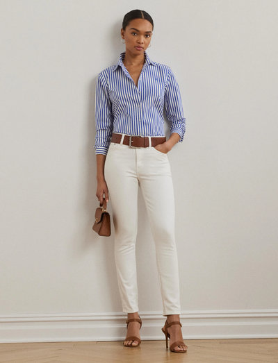 Tavaline lõigeSee triibuline nööbitav särk on valmistatud kargest puuvillapopliinist, luues viimistletud ja ajatu välimuse. Disaini täiendavad tikitud "LRL" logo rinnal ja "Lauren Ralph Lauren" graveeritud nööbid.