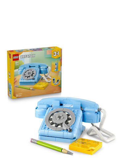31174Nostalgic adults and creative kids aged 8 and over can go back in time with this stylish LEGO® Creator 3in1 Retro Telephone (31174) building set. It features a cool retro phone toy from the 1960s with a liftable receiver, a flexible cord, a rotary dial and a spring function for when callers hang up. The retro decor set also comes with a brick-built pencil and customisable sticky notepad with a choice of 3 tiles featuring different messages.