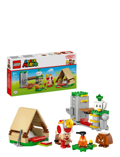 6+ AastadExplore Captain Toad’s camp and hunt for hidden treasure with this fun-packed LEGO® Super Mario™ toy playset for kids (72040). A fantastic small gift for boys, girls and any fans aged 6 and over, the toy building set features a buildable tent with a bonfire for Captain Toad, a collapsible bridge, hidden diamond accessories and a treasure chest. There are also 3 LEGO Super Mario figures – Captain Toad, a Goomba and a turnip – plus accessories including a buildable backpack, and pickaxe and pan accessories to inspire creative role play.